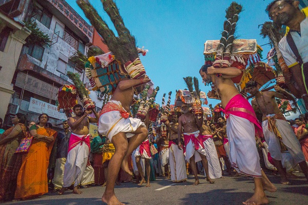Thaipusam celebrations in Penang is unique as it features two chariots – the silver chariot and the golden chariot. The silver chariot carries the statue of Lord Murugan while the golden chariot carries the vel (spear).